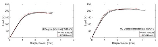 Consequently, parameters for the constitutive equation were acquired, adjusted and imported into FEM codes as a consequence of experimental studies to constitute the material’s behavior. In the FEM analysis, isotropic elasticity and plasticity were used to validate flexural test results and to measure the deformation limit of chiral units without experiencing permanent deformations, degradation or failures. As seen in Figure 15, close correlations were monitored between flexural test and numerical analysis results. Furthermore, as a result of the chiral compressive load tests and FEM analysis, Figure 16 was obtained.