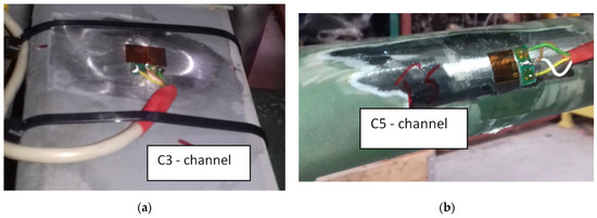 The measuring points were installed on an unloaded car. This was carried out to determine the loads caused by the vehicle’s operation; therefore, it was not necessary to install them in an unloaded state. A view of the developed measuring points is shown in Figure 5.