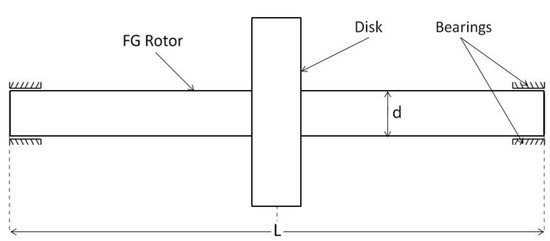 In the present study, the global dynamic stiffness matrix has been derived for the FG rotor bearing system in which the FG rotor is subjected to temperature gradients. The FG rotor consists of a uniform rigid disk at the centerand is supported on linear isotropic bearings at the ends as shown in Figure 7. A code has been developed in Python Programming Language (PPL) to obtain the natural and whirl frequencies of the FG rotor bearing system from its global dynamic stiffness matrix developed in this paper using the Wittrick–William algorithm. The step-by-step validation procedure of the developed DSM method with the published results has been presented in the following subsections.