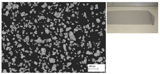 Figure 1 shows the micrograph of water atomized iron powder. The irregular particle shape is immediately obvious. The particle size ranges roughly from 20 µm to 200 µm. The Hall flow rate is 26.8 s for 50 g, while an apparent density of 3.02 g/cm3 was established. Both values agree well with the manufacturer’s information.