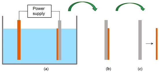 Preparation of Cu substrates by electroforming: (a) electrolytic cell, (b) plated mandrel, (c) free-standing Cu foil.