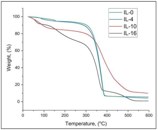 3.5. Thermal Gravimetric Analysis of the Prepared ILs