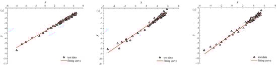 Data distribution curve of (x, y) of Na2SO4 at different concentrations: (a) α = 0.02 mol·L−1; (b) α = 0.06 mol·L−1; (c) α = 0.10 mol·L−1.