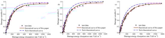 where Y is the damage energy dissipation rate, Ue is the elastic strain energy, and D is the damage variable, which can be obtained by Equation (11).