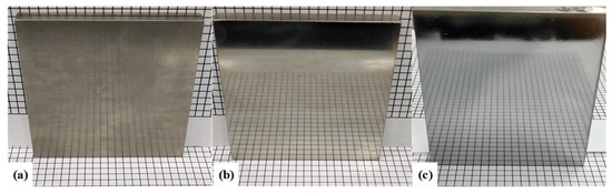 Comparison of titanium alloy surface effects before and after polishing with SR bonnet and PR bonnet: (a) Before polishing, (b) uniform polishing after SR bonnet, and (c) uniform polishing after PR bonnet.