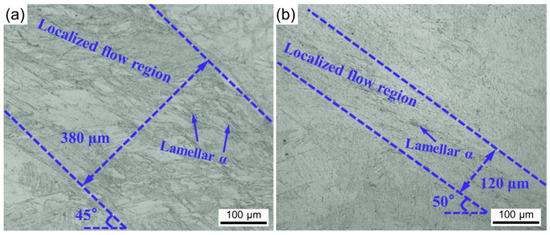 - Jiang, X.Q.; Fan, X.G.; Li, Q.; Zhan, M. Strengthened flow instability in hot deformation of titanium alloy with colony structure: On the effect of microstructure heterogeneity. J. Alloy. Compd. 2019, 801, 381–393. [Google Scholar] [CrossRef]