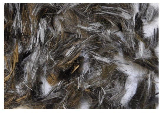 Carbon fibers (CF), purchased from Mitsubishi Chemical America, Charlotte, NC, USA, were used in the present study. They were available in black chopped strands of multi-filaments (refer to Figure 1) sized with water-soluble resin. The fibers were 10 mm long and had a filament diameter of 17 μm. The specific gravity, ultimate tensile strength, and Young’s modulus of the elasticity of the carbon fibers was 1.85, 1770 MPa, and 180 GPa, respectively.