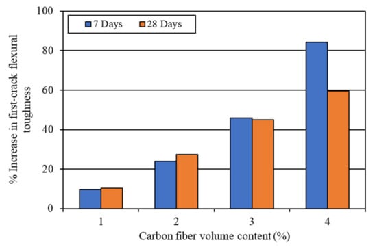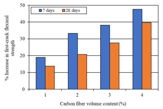Increase in first-crack flexural strength due to the incorporation of carbon fibers.