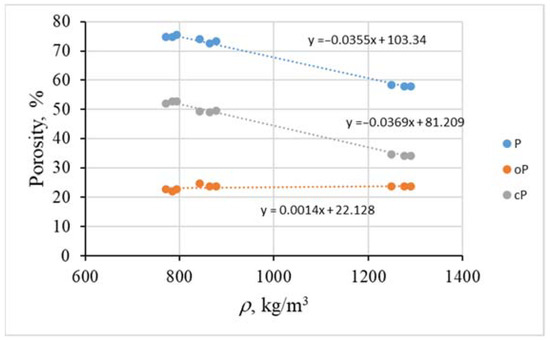 where fc, ffl represent the compressive and flexural strength (MPa), respectively, and ρ represents the bulk density, kg/m3.