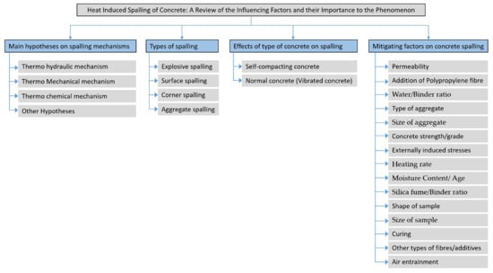 There are many factors that can, and do, influence the spalling behaviour of concrete subjected to elevated temperatures [5,16,27,60,61,62,63,64]. The influencing parameters can be generally divided into four categories [43]: