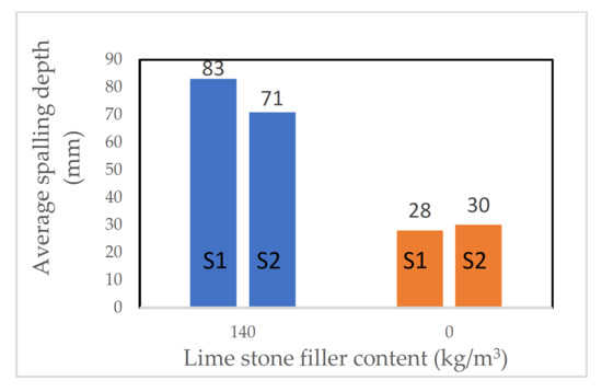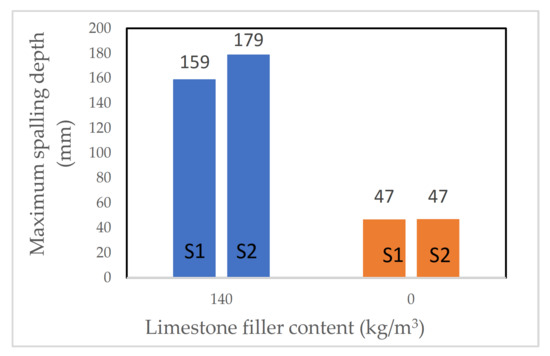 Maier et al. [40] performed a series of tests on concrete slabs (800 mm × 500 mm × 150 mm). The researchers concluded that the main factor for spalling was the increasing pore pressure and not the chemical degradation of the concrete components. The study, nonetheless, stated that deteriorating components of the concrete at elevated temperatures worsened the overall spalling level when it happened.