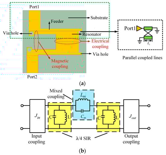 - Zhu, F.; Hong, W.; Chen, J.-X.; Wu, K. Quarter-wavelength stepped-impedance resonator filter with mixed electric and magnetic coupling. IEEE Microw. Wirel. Compon. Lett. 2014, 24, 90–92. [Google Scholar] [CrossRef]