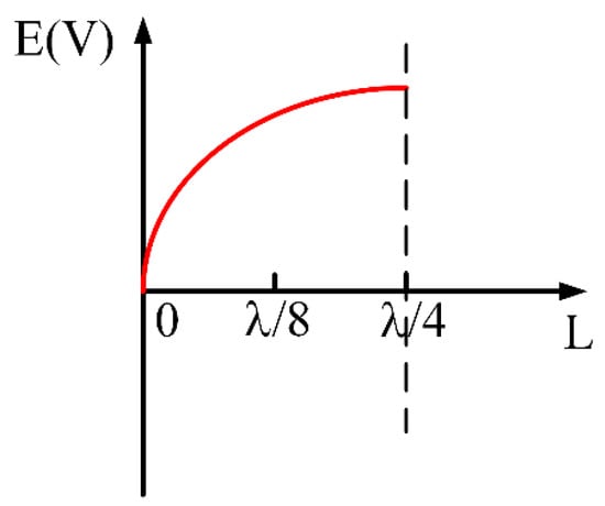 Figure 5 shows the electric field distribution of the quarter-wavelength SIR, which can facilitate the analysis of the relationship between loading position and resonance intensity. In order to study the specific effect of graphene on the electric field, the electric field distribution on the filter with grapheme located at different positions is simulated. Figure 6a shows the electric field intensity distribution on the filter resonators. It can be seen that a strong electric field is generated around the filter resonator. Figure 6b shows the magnetic field strength distribution of the filter resonator. Usually, graphene is equivalent to a tunable lumped resistor R. The relationship between the simulated value of the sheet resistance and the calculated resistance can be expressed as