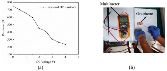 (a) Measured DC resistance versus bias voltage. (b) Measuring graphene resistance.