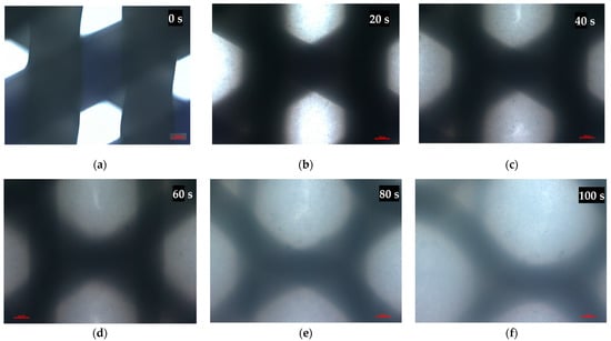 Microscopical images of the scaffold pores before (a) and after (b–f) xylene addition at a temperature of 23 °C. Representative images are shown at 10× magnification. Images were taken in 20-s intervals. Scale bars represent 100 μm.
