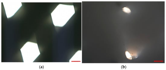 Microscopical images of scaffold pores before (a) and after bathing in water at a temperature of 57 °C for 10 min. Representative images are shown at 10× magnification. Scale bars represent 100 μm.