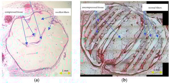 Despite the considerable developments in imaging techniques allowing for comprehensive in vivo and postmortem scaffold evaluation, and even the creation of 3D virtual models [29,30], little attention has been paid to the refinement and updating of histopathological techniques, which remain the basic tool for assessments of scaffold morphology, biocompatibility, and interactions with the surrounding cells. The standard techniques used today only allow for evaluations of selected representative fragments, where the scaffold is often cleared, melted, or swollen, and it is not possible to obtain the full cross-section view with the preserved scaffold’s honeycomb-like structure [31,32].