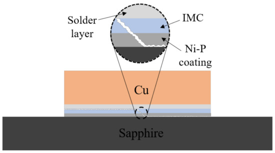 - The direct joining between sapphire and copper was achieved by the conventional reflow process at 250 °C and reduced pressure. The nickel atoms from the Ni-P metallization interacted with Sn atoms in the solder, resulting in the formation of Ni-Sn IMCs to achieve metallurgical bonding at the joint interfaces.