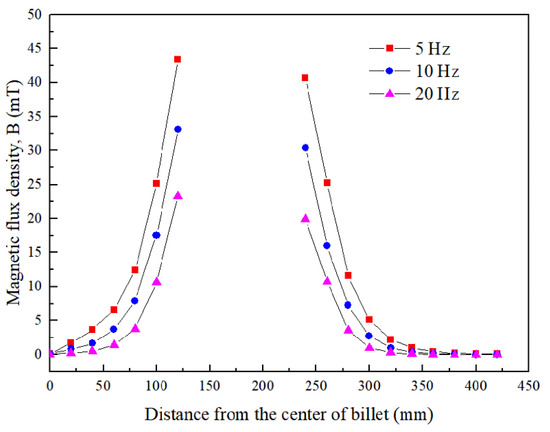 Radial distributions of magnetic flux density on the cross section of billet.