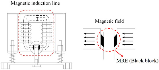 Magneto rheological elastomer (MRE) is a type of magneto rheological smart material that uses polymer elastomer as the matrix and contains magnetic particles [30,31]. It can quickly change its storage modulus with the change of the external magnetic field, and has the ability to change stiffness in real time [32]. As a stiffness adjustable element, MRE has been used in many applications, such as stiffness-adjustable spring elements [33], stiffness-adjustable differential mounts of vehicles [34] and Mechanical leg, using MRE joints [35]. It can be seen that MRE has a good stiffness adjustment ability and can be used to make intelligent vibration reduction devices.