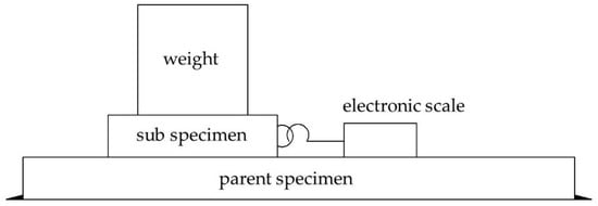 Loading diagram of the friction coefficient test. Note: the longitudinal grain direction of the parent specimen is horizontal; the longitudinal grain direction of the sub-specimen is vertical.