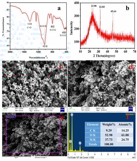 - Mohanraj, K.; Kannan, S.; Barathan, S.; Sivakumar, G. Preparation and characterization of nano SiO2 from corn Cob Ash by precipitation method. Optoelectronics and Advanced Materials. Rapid Commun. 2012, 6, 394–397. [Google Scholar]