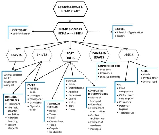 Schematic performance of multidirectional potential of the use hemp raw materials, based on [12].
