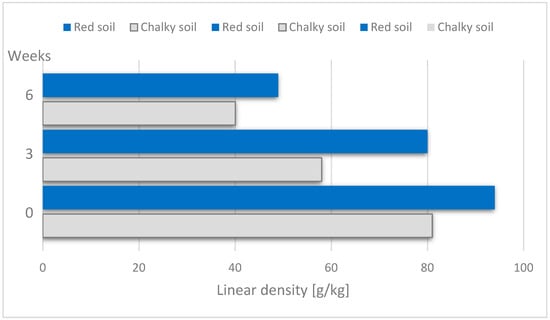 Fibre moisture content has an effect on processing efficiency, and fibre linear density results from the swelling tendency of the fibres [60], shown in Table 6. The optimal value of moisture content for the hackling and scutching of the fibres suitable for further processing is between 10 and 12%.
