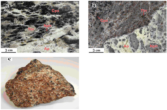 30]. The size of the sphenite ore blocks in some places reaches dozens of meters, which makes it possible to organize their selective extraction during the development of apatite deposits.