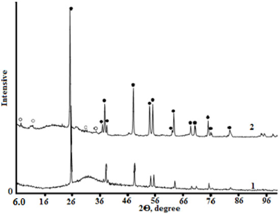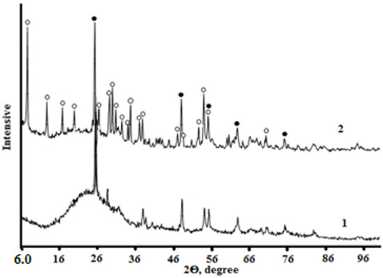 Figure 16). Thus, under the autoclave curing conditions of the crushed sample, the formation of the titanosilicate phase was accelerated and the final product crystallized almost completely as a new phase with a zorite structure, with the impure phase being rutile. The specificity of the transformations in the described experiment seemed to be due to the fact that, in the absence of sodium hydroxide, the mixture received significantly more energy per unit mass. By the time sodium hydroxide was added, the surface activity of the components was higher than that in the case of a single load.