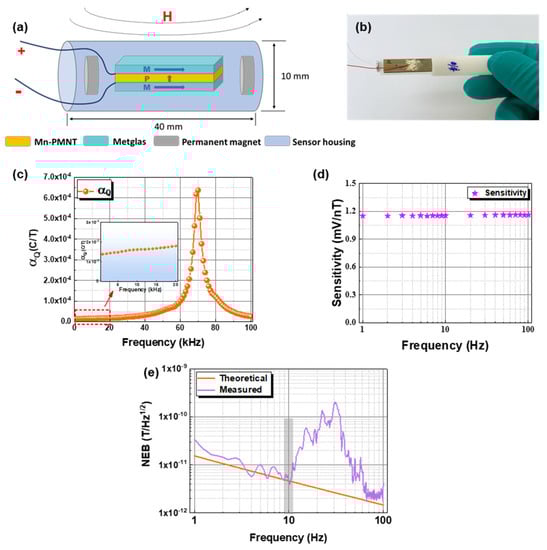 - Chen, R.; Chen, Z.; Hu, F.; Jiao, J.; Di, W.; Lu, L.; Luo, H. Reducing the equivalent magnetic noise of Metglas/Mn-PMNT laminate composites via annealing treatment. J. Magn. Magn. Mater. 2020, 512, 166976. [Google Scholar] [CrossRef]
