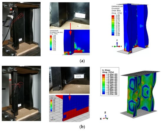 Global deformation and local damage of thin-walled composite structures: (a) Experimental and 2D numerical model (PFA and CZM) [31]; (b) Experimental [31] and 3D numerical model (On concept of smear crack).