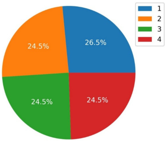 In order to demonstrate the correctness of the analyses carried out with regard to the number of tests performed with various modifiers (rare Earth oxides) and their effect on tribological properties, a class chart was prepared. For the tests conducted, the lack of balance between the individual classes may influence the real assessment. Figure 2 shows the number and percentage of the elements per class.