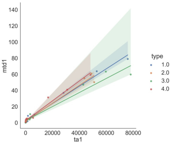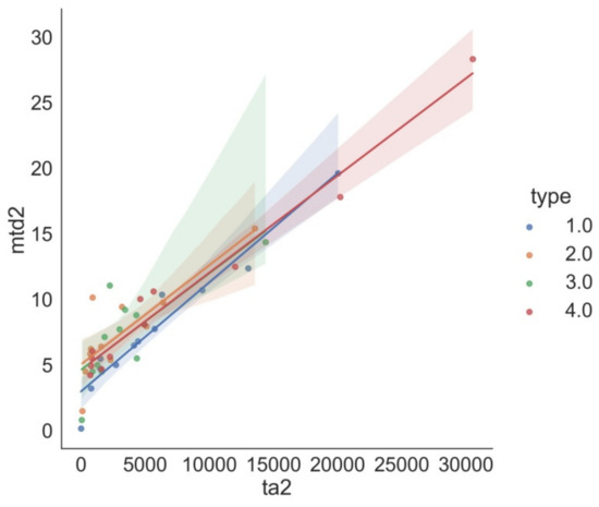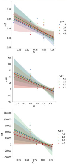 To confirm the correlations discussed above, they are presented in the form of relationships between the variables (Figure 8, Figure 9, Figure 10).