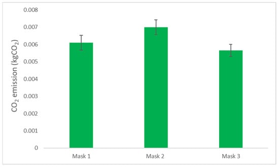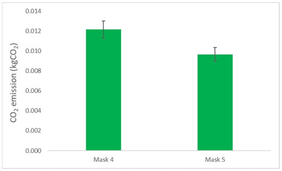 CO2 emissions per mask (e) were calculated as defined in Section 2. Results are reported in Figure 4.