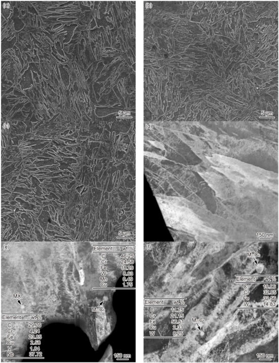 - Liu, Z.; Liu, Z.; Wang, X.; Chen, Z.; Ma, L. Evolution of the microstructure in aged G115 steels with the different concentration of tungsten. Mater. Sci. Eng. A 2018, 729, 161–169. [Google Scholar] [CrossRef]