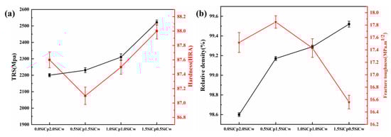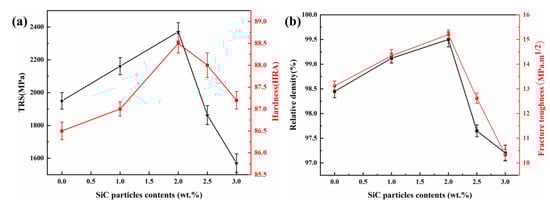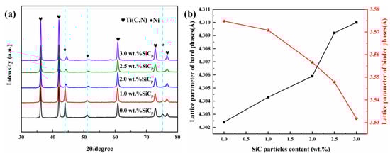 - When SiCp was added into the Ti(C,N)-based cermets independently, the peak value of the mechanical properties was achieved when the addition amount was 2.0 wt.%. The transverse rupture strength, hardness, and fracture toughness of the cermets reached 2370.3 MPa, 88.5 HRA, and 15.2 MPa·m1/2, respectively.