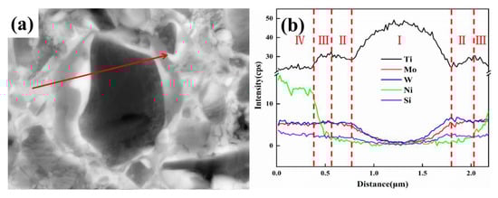 - Li, P.; Ye, J.; Liu, Y.; Yang, D.; Yu, H. Study on the formation of core–rim structure in Ti(C,N)-based cermets. Int. J. Refract. Hard Met. 2012, 35, 27–31. [Google Scholar] [CrossRef]