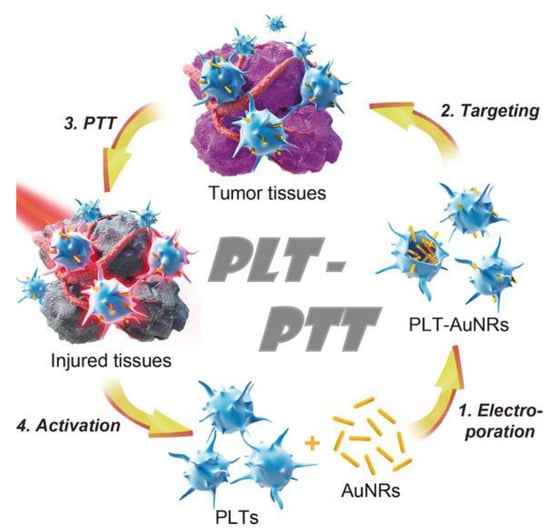 - Rao, L.; Bu, L.L.; Ma, L.; Wang, W.; Liu, H.; Wan, D.; Liu, J.F.; Li, A.; Guo, S.S.; Zhang, L.; et al. Platelet-Facilitated Photothermal Therapy of Head and Neck Squamous Cell Carcinoma. Angew. Chem. 2018, 57, 986–991. [Google Scholar] [CrossRef]