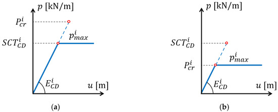 where is the maximum load of the -th layer, and is the take-up factor (see Table 2). The maximum load of the layer can be the critical load or the compressive strength , whichever is achieved first (see Figure 3). The maximum load is: