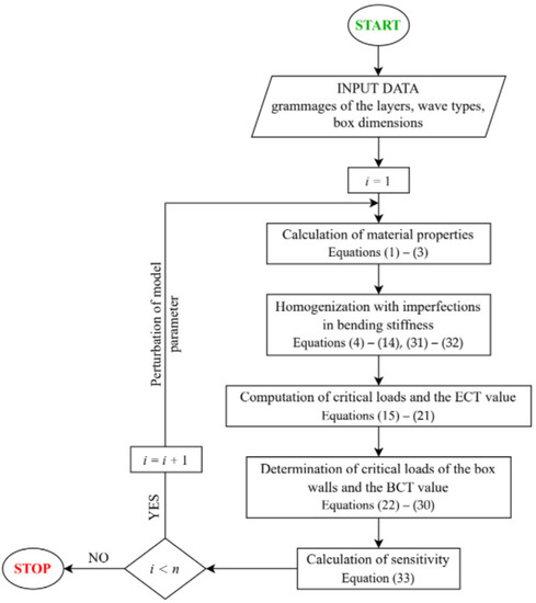 Flowchart of the algorithm for the determination of the non-local sensitivities of a five-play corrugated board.
