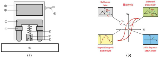 - Dobmann, G.; Kern, R.; Altpeter, I.; Theiner, W. Quantitative hardening-depth-measurements up to 4 mm by means of micro-magnetic microstructure multiparameter analysis (3MA). NDT E Int. 1991, 24, 44. [Google Scholar] [CrossRef][Green Version]