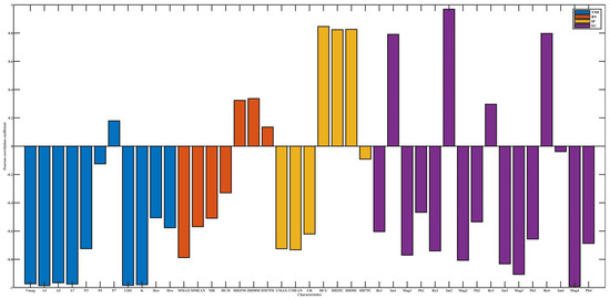 3.2. Analysis of Pearson’s Correlation Coefficients