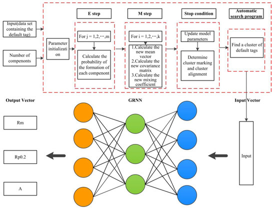 As shown in Figure 10, a new method, an improved GRNN model based on the GMC algorithm, is proposed to predict mechanical properties. Mechanical properties (Rm, Rp0.2, A), obtained from the LD, are selected as input parameters of the GMC model.