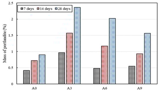 Mass of portlandite in the paste specimens on the 7th, 14th, and 28th days, quantified from TG results.