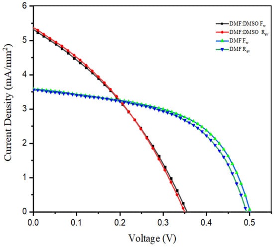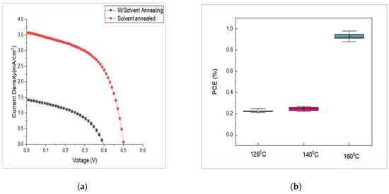 3.2. The Influence of Solvent Vapour Annealing on I–V Characteristics