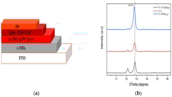 - Johansson, M.B.; Philippe, B.; Banerjee, A.; Phuyal, D.; Mukherjee, S.; Chakraborty, S.; Cameau, M.; Zhu, H.; Ahuja, R.; Boschloo, G.; et al. Cesium Bismuth Iodide Solar Cells from Systematic Molar Ratio Variation of CsI and BiI3. Inorg. Chem. 2019, 58, 12040–12052. [Google Scholar] [CrossRef] [PubMed]