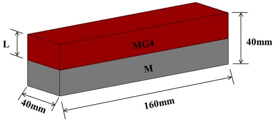 The samples were fabricated as follows. First, a fresh mixture M with a specified thickness (Table 2) was poured into steel molds of 40 mm × 40 mm × 160 mm. Next, the M layer was vibrated on a vibration table to remove air bubbles trapped inside and placed in an ambient environment for the specified delay time (Table 2). A fresh mixture of MG4 was then slowly deposited on top of the M layer by casting uniformly from one side to the other. The overall sample vibrated again. The process was the same and consistent for all the samples. After the samples were cast, the molds were covered with a thin polyethylene sheet to prevent moisture from escaping and then cured in an indoor environment at 20 °C and relative humidity of 95%. After 24 h, the samples were demolded and cured in a saturated limewater bath at 20 °C until testing.
