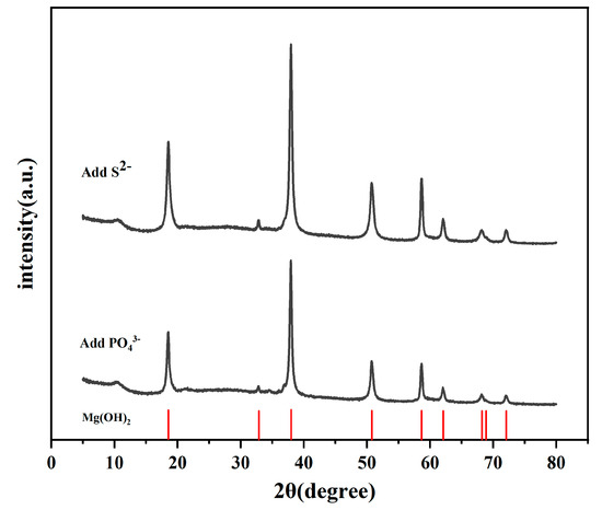 The white precipitate at the bottom of the beaker during the immersion experiment was tested by X-ray diffractometry. The precipitate showed a good antipodicity Mg (OH)2 standard (Figure 8). The only difference is the peak strength, which probably is related to the crystallinity of the corrosion products. This indicates that the corrosion products generated during the experiment react with water and then fall off from the substrate surface in the form of Mg (OH)2. If the magnesium alloy is in contact with the corrosive medium, the area without oxidation film covered can react preferentially as an anode and then corrode: