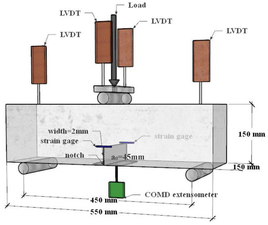 - Rilem, T.C. Draft recommendation: “Determination of the fracture energy of mortar and concrete by means of three-point bend tests on notched beams”. Mater. Struct. 1985, 18, 484. [Google Scholar]